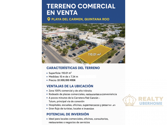 Pesos Mexicanos🏗️ Terreno Comercial en Venta – Playa del Carmen, Quintana Roo